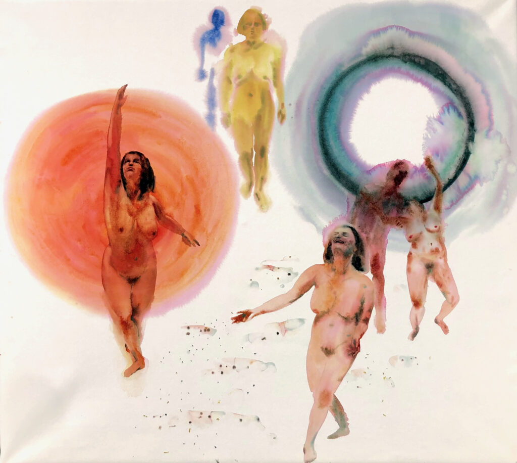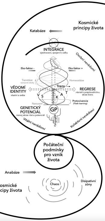 (Obraz Teoretického modelu namalovaný pro závěrečnou práci studia Biodanzy vystavený v Galerii Středočeského kraje GASK v Kutné Hoře do 19. 10. 2025 a originální Teoretický model Biodanzy Rolanda Tora.)